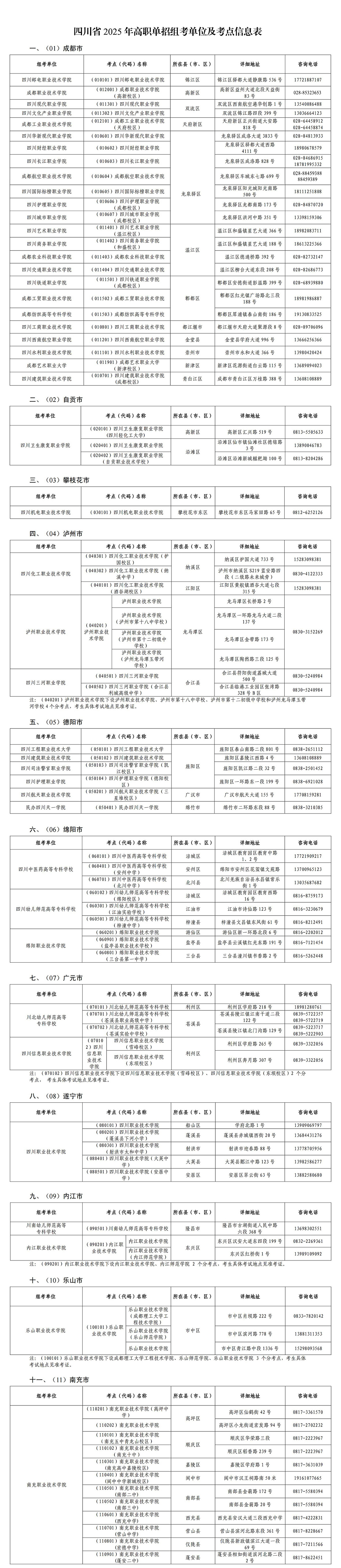 根据《四川省教育厅关于做好2025年高等职业教育单独新利体育在线登陆官网网址有关工作的通知》文件要求,成都纺织高等专科学校等50所省内高等职业学校为我省2025年高等职业教育单独新利体育在线登陆官网网址组考单位,巴中市、资阳市、阿坝州、甘孜州4个市(州)无组考单位,由市(州)新利体育在线登陆官网网址机构代为组考。现将组考单位及考点信息予以公布。