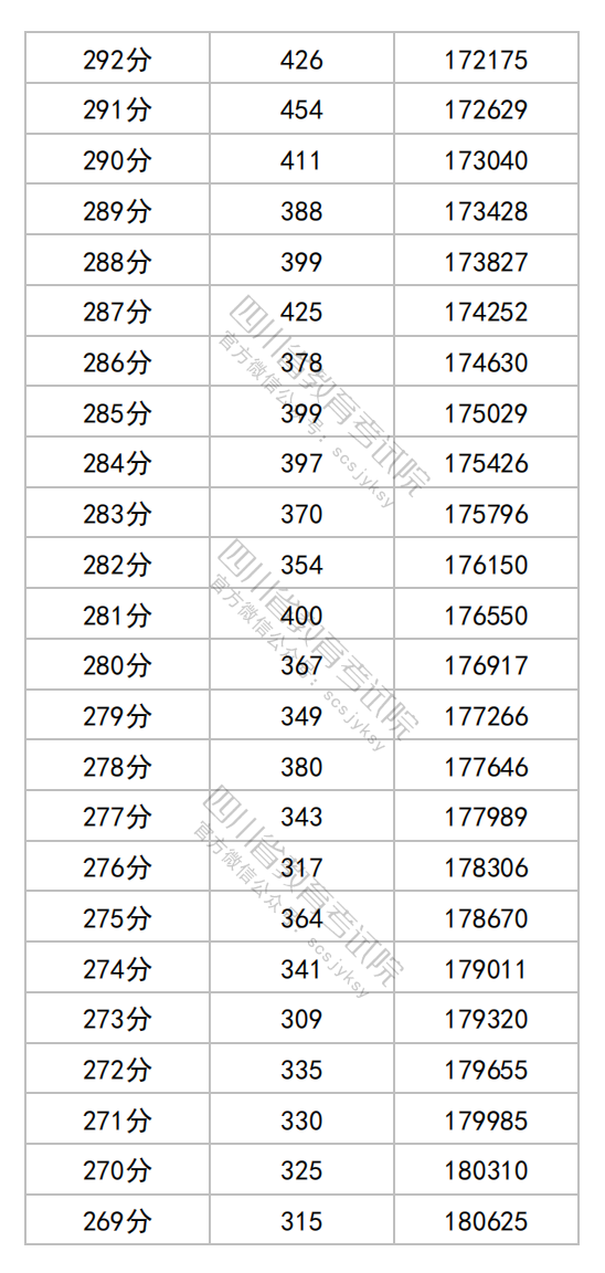 四川省2025年高考综合改革适应性演练成绩分段统计表(历史类)