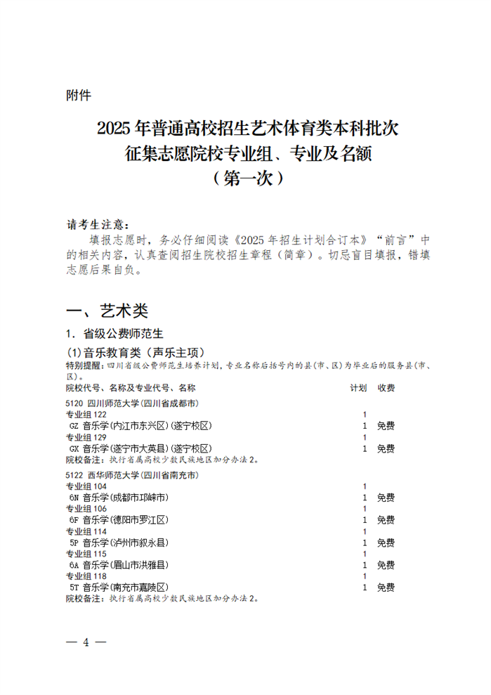 关于我省2025年艺术体育类本科批次未完成计划院校第一次征集志愿的通知