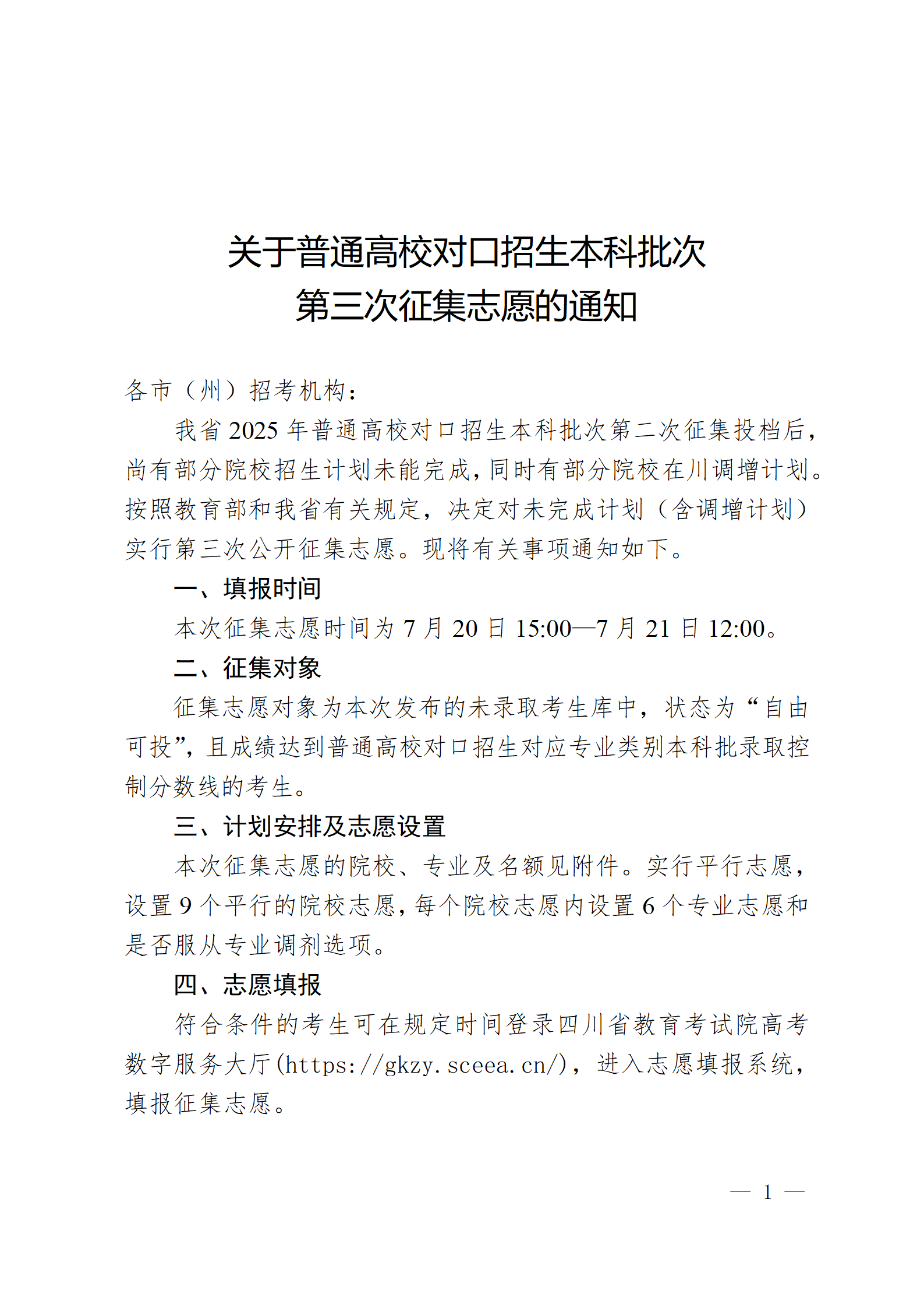 关于下发2025年普通高校在川招生计划更正及调整的通知(二)