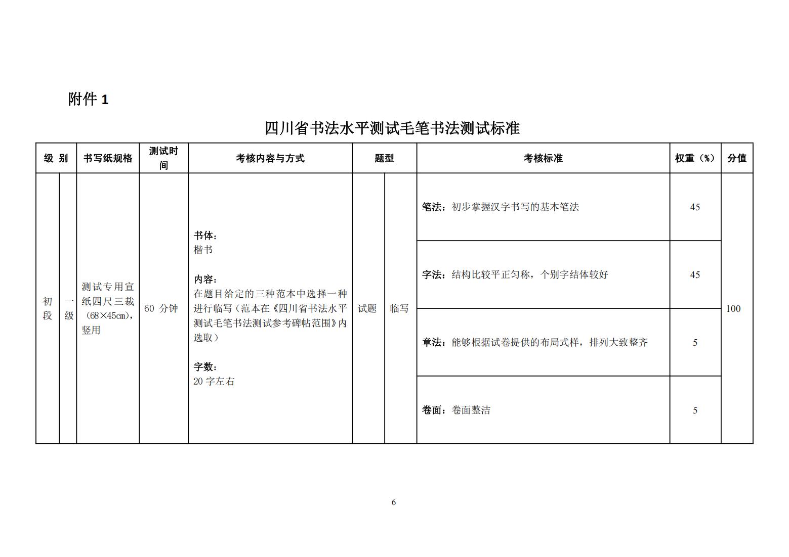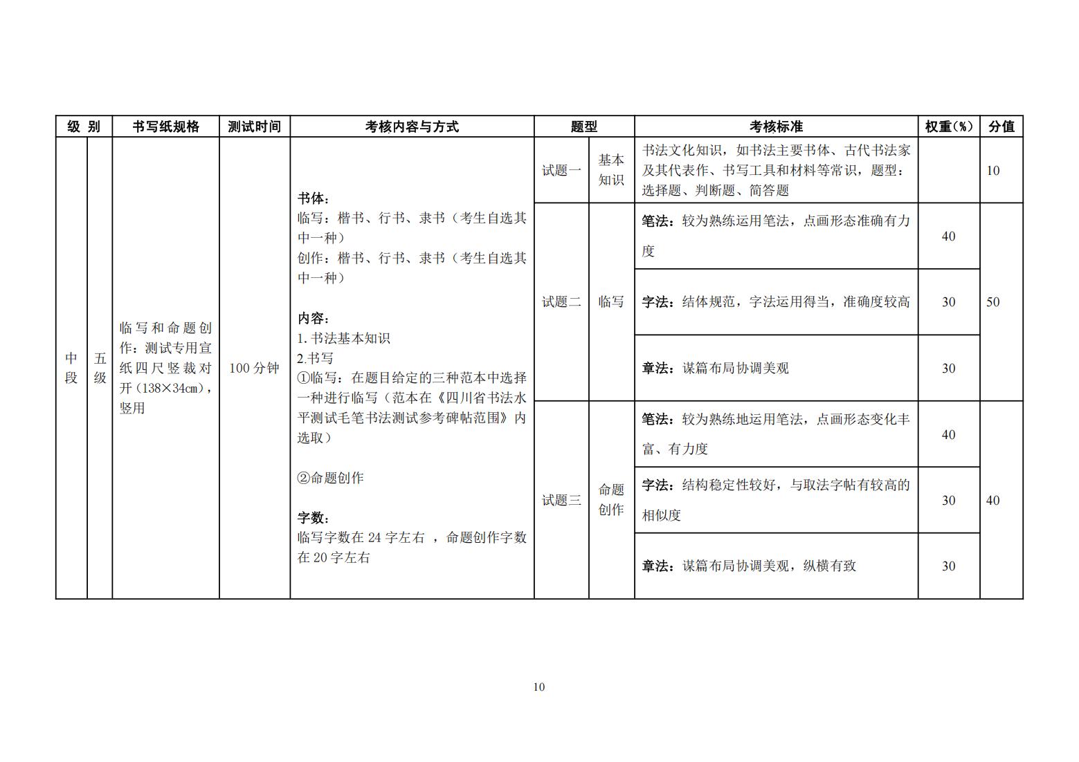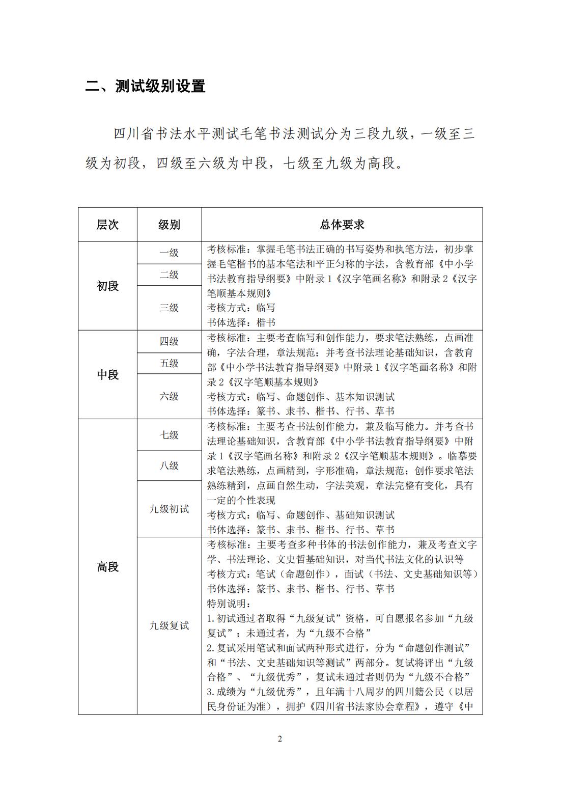 四川省书法水平测试毛笔书法测试大纲(2025年版)