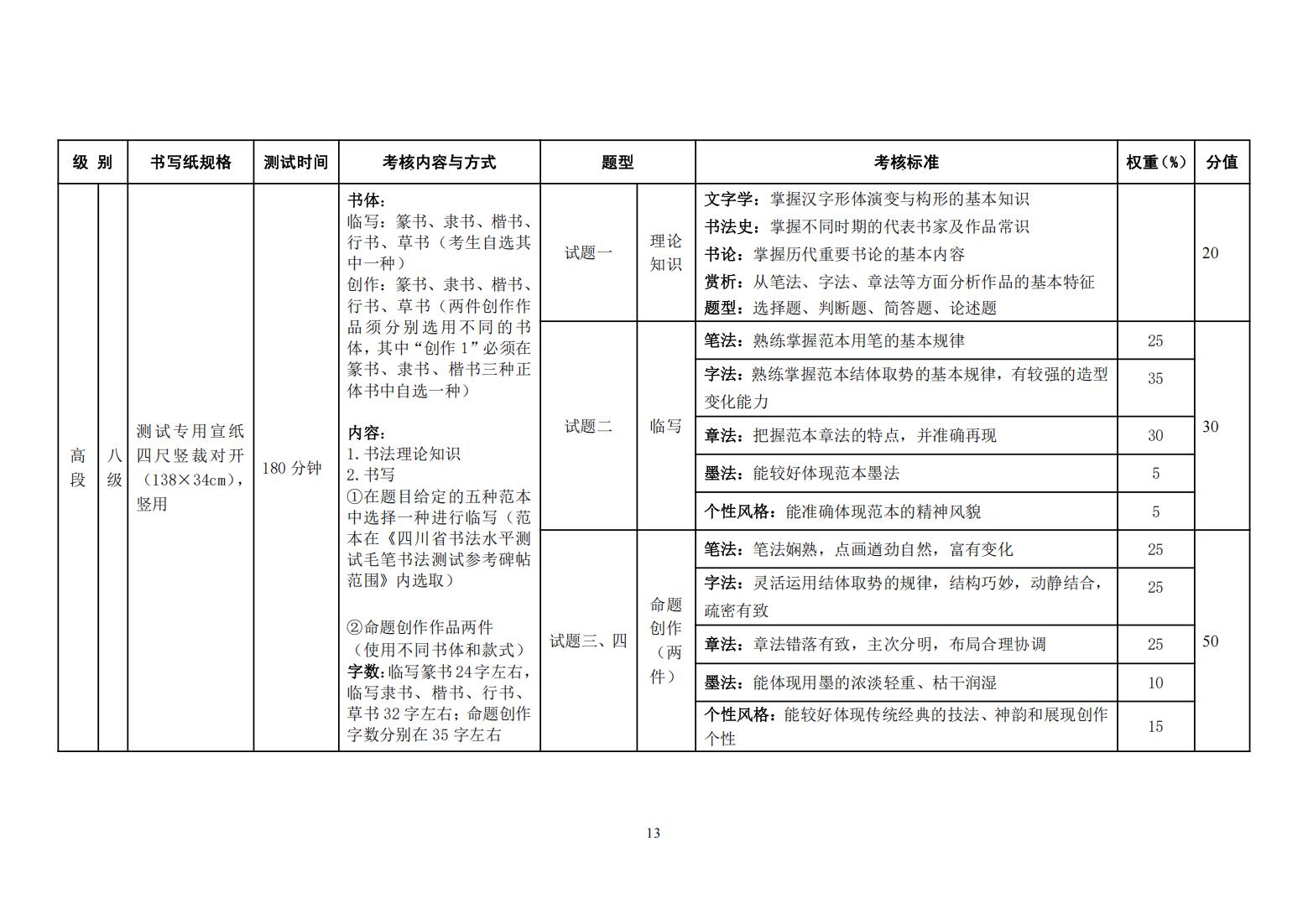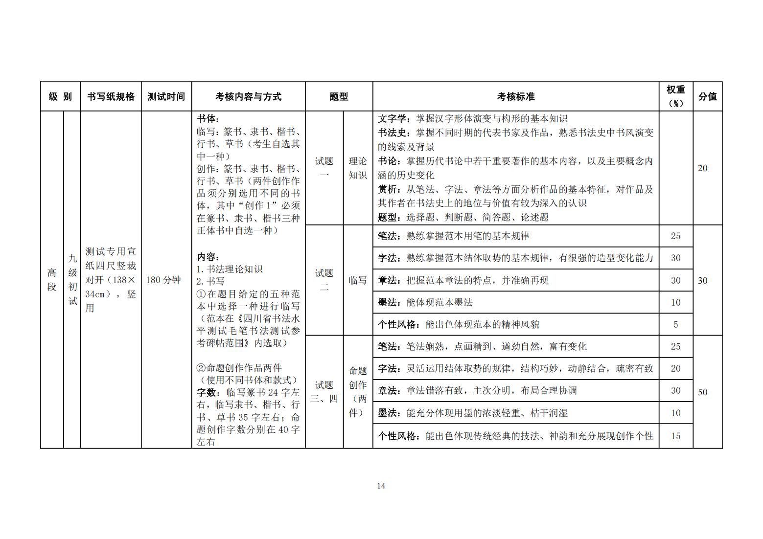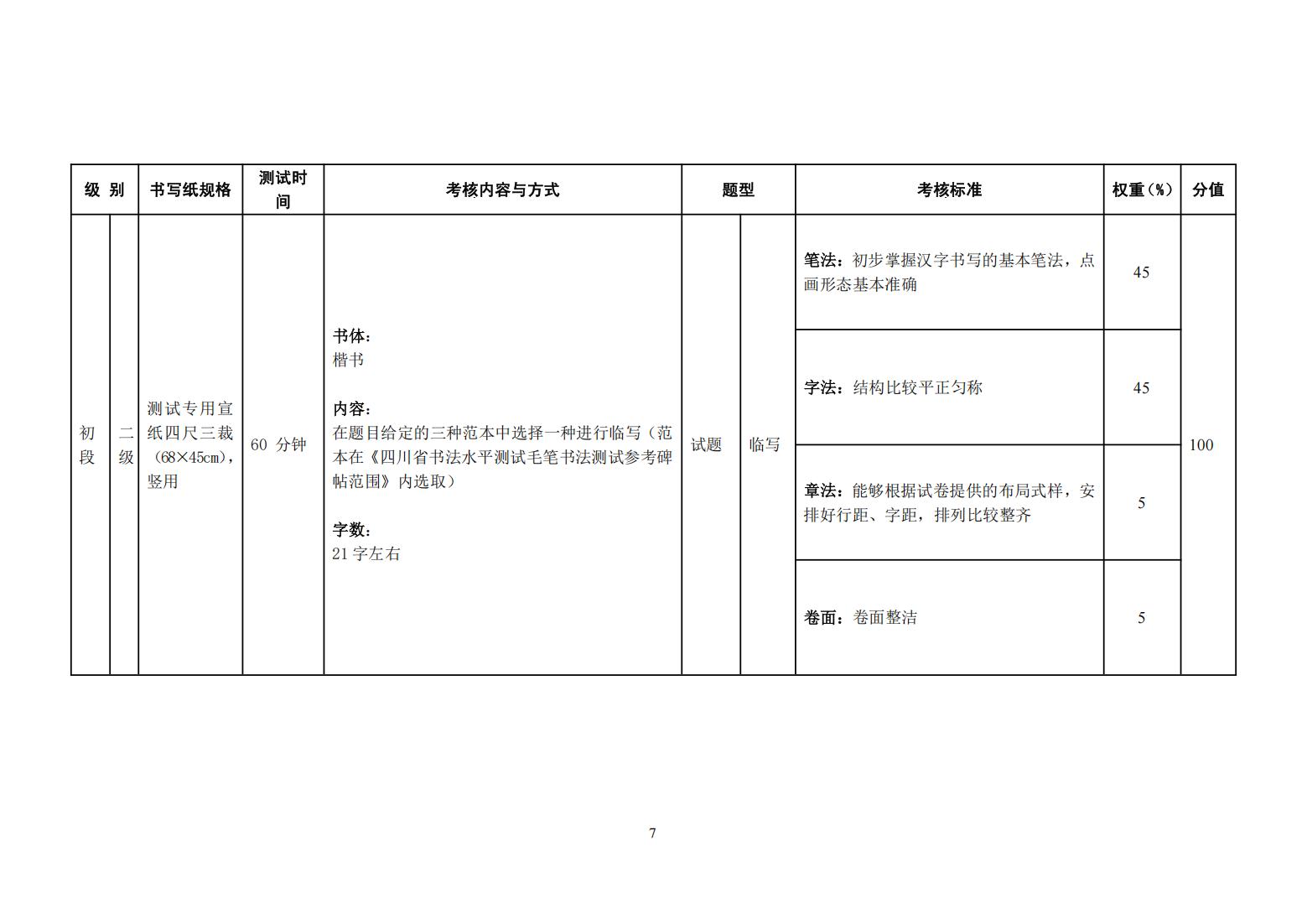 四川省书法水平测试毛笔书法测试大纲(2025年版)
